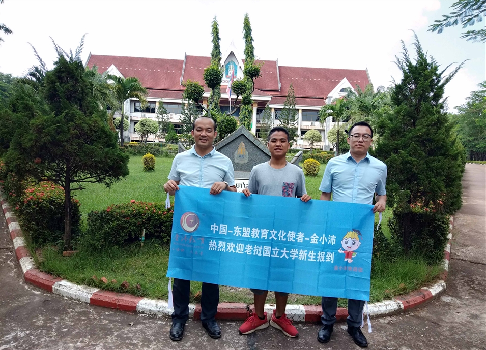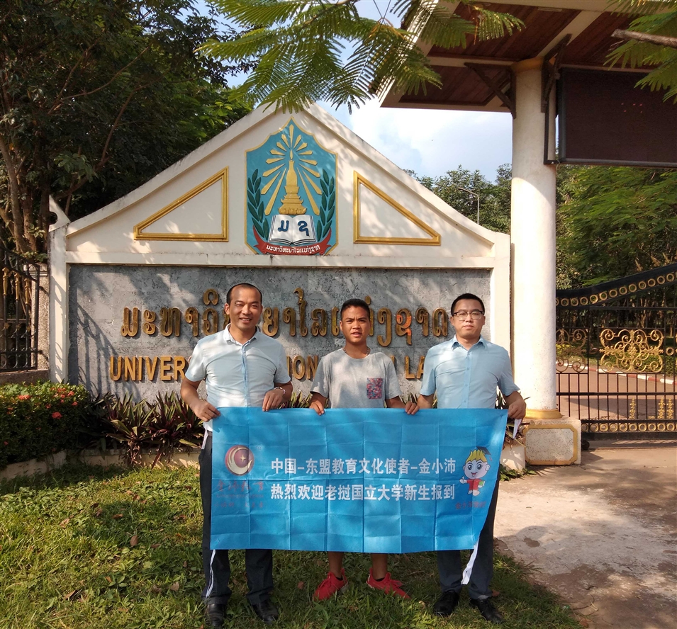 日,廣西金沛教育執(zhí)行董事粟宥朝攜新生至老撾國立大學(xué)辦理入學(xué)手續(xù),并帶領(lǐng)新生參觀了校園和老撾標(biāo)志性建筑,體會(huì)當(dāng)?shù)氐娘L(fēng)土人情。