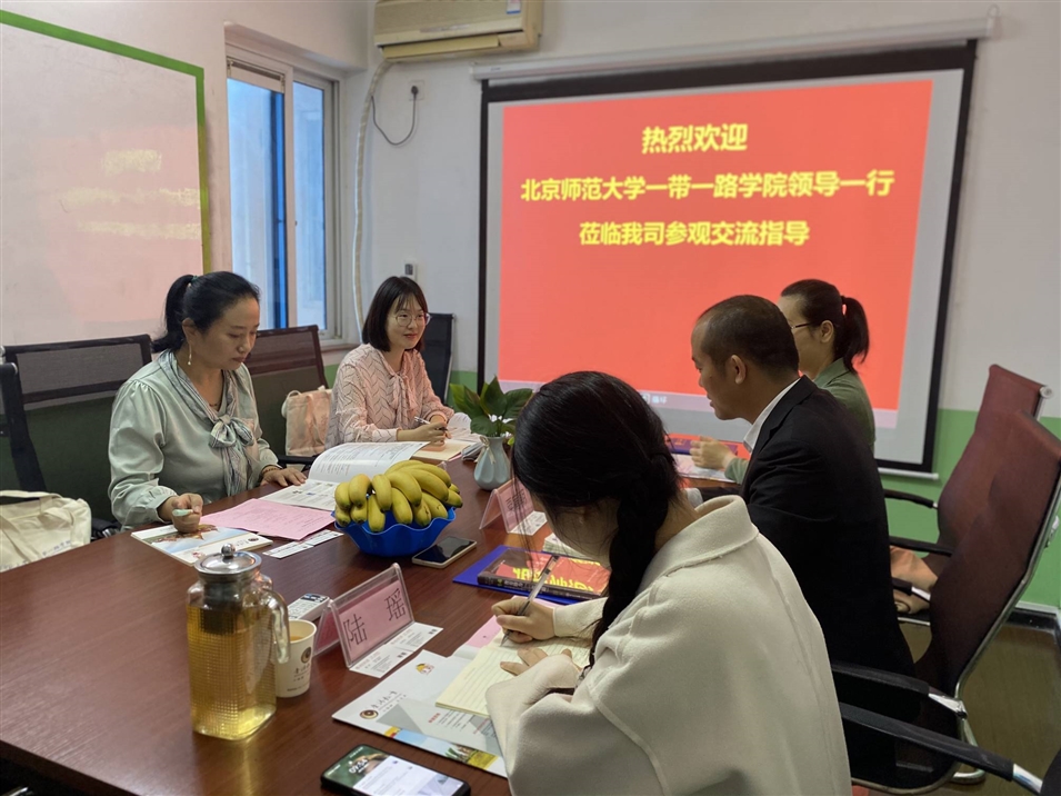 2021年4月7日上午,北京師范大學(xué)一帶一路學(xué)院陳健博士、李邵悅老師一行蒞臨我司參觀交流指導(dǎo),我司執(zhí)行董事粟宥朝先生、校長張金雪女士、國際部專員陸瑤女士等參加了座談。