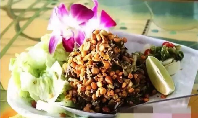 或許緬甸最知名的食物就屬茶葉沙拉了,被稱作緬甸的國菜。大家常把茶葉作為甜點吃,但有時分茶葉也會作為茶葉沙拉的質料呈現(xiàn)。