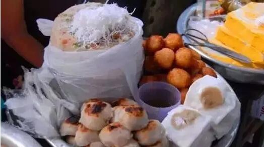 這種黏黏的黃色的粥一般伴米粉和腌制的雞肉或豬肉。粥上會淋一點辣椒油,配有腌菜和肉湯。這是一種盡管古怪可是十分招引眼球的組合,可是,如果你是一個熱愛香馥馥的滋味的吃貨,你一定會越來越喜愛它。