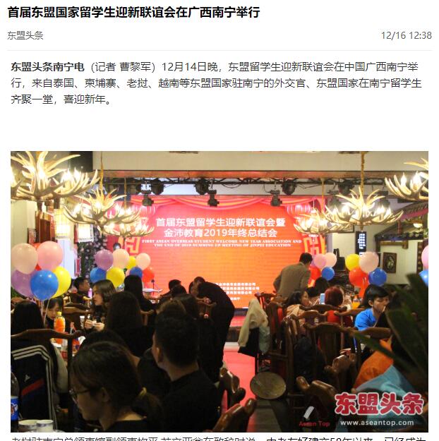 此次“首屆東盟留學(xué)生迎新聯(lián)誼會(huì)”得到東盟相關(guān)主流媒體的關(guān)注和報(bào)道,引起了東盟留學(xué)生的熱烈反響,這將為我們進(jìn)一步開展中國-東盟國際教育合作發(fā)展提供強(qiáng)有力的媒體支持。