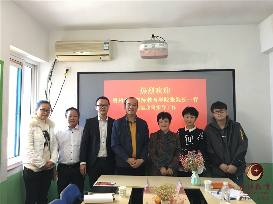 2017年12月2日上午,貴州大學(xué)國際教育學(xué)院張成霞院長與教學(xué)科科長唐穎、留學(xué)生輔導(dǎo)員李博一行蒞臨我司視察指導(dǎo)工作,由我司執(zhí)行董事粟宥朝、校長張金雪、國際部合伙人吳琪、林健偉老師接待來賓。