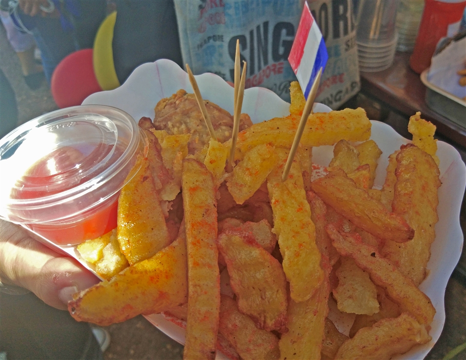 這是一場(chǎng)以各國(guó)美食為媒介的文化互動(dòng),文學(xué)院各系的學(xué)生在美食活動(dòng)現(xiàn)場(chǎng)展示了日本、中國(guó)、老撾、韓國(guó)、法國(guó)歐、亞兩州不同國(guó)家的美食比如中國(guó)的燒仙草、法國(guó)的薯?xiàng)l、老撾的肉串等,老撾國(guó)立大學(xué)的學(xué)生在暢享美食之際也在進(jìn)行飲食文化的分享與交流。